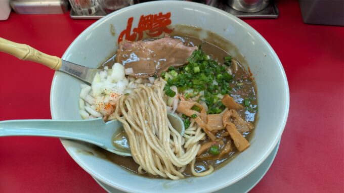 「山岡家」さんの豚骨スープにとろみがついた濃厚ど煮干スープは、豚骨醤油とは違う独特な風味というのが印象的です。