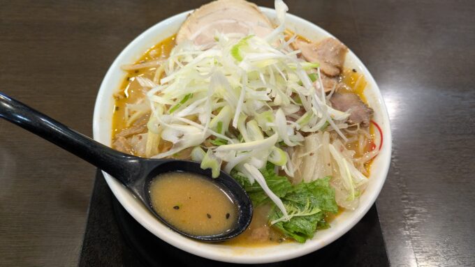 トッピングは「ねぎ・水菜・メンマ・チャーシュー」です。